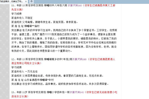 为让更多的特殊家庭的孩子穿上新棉衣,昌邑之窗及时与妇联沟通,追加贫困孩子档案,孩子资料列表增加到26个。