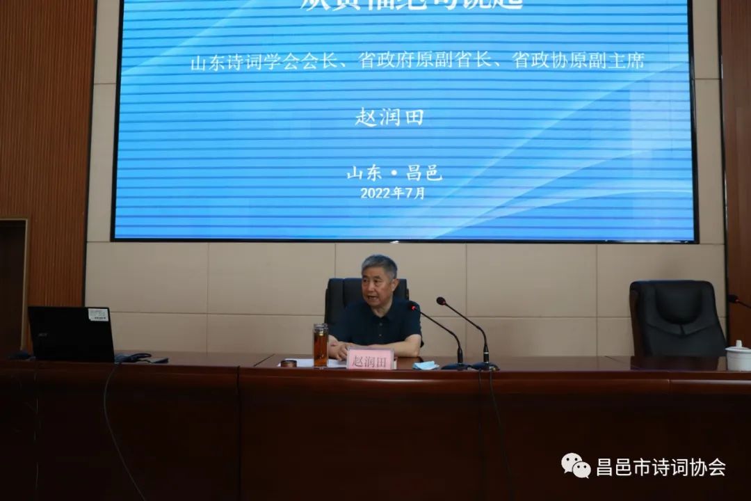 赵润田:山东诗词学会会长、山东省人民政府原副省长、山东省政协原副主席作《黄福绝句说起》专题辅导。