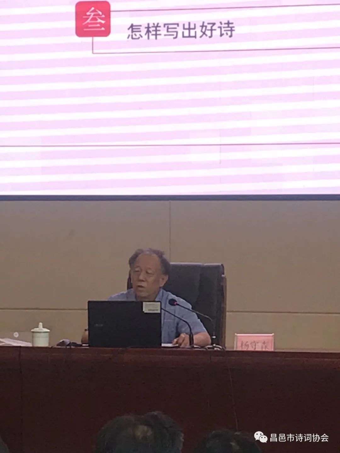 杨守森:山东诗词学会副会长、山东师范大学教授作《诗歌与诗歌的创作》专题辅导。