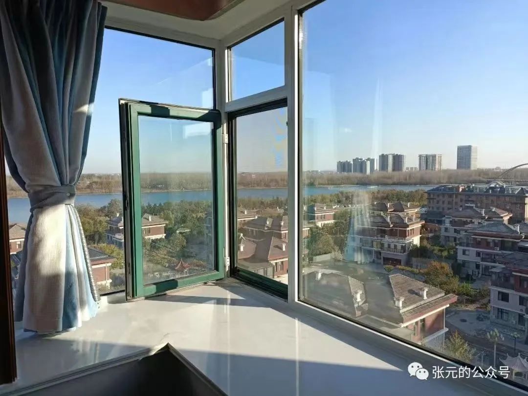 这是帮一位亲戚安装有线电视时,在他位于潍水龙城家中拍摄的一幅画面,这个位于主卧室“带拐角的观景飘窗”,在我看到它的第一眼就掉进去,再也没有拔出来!