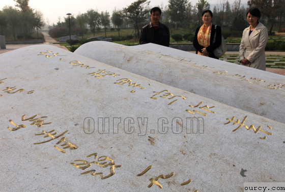 昌邑市作协主席姚凤霄陪同我省著名作家杨文学先生(中)参观峻青雕塑广场。