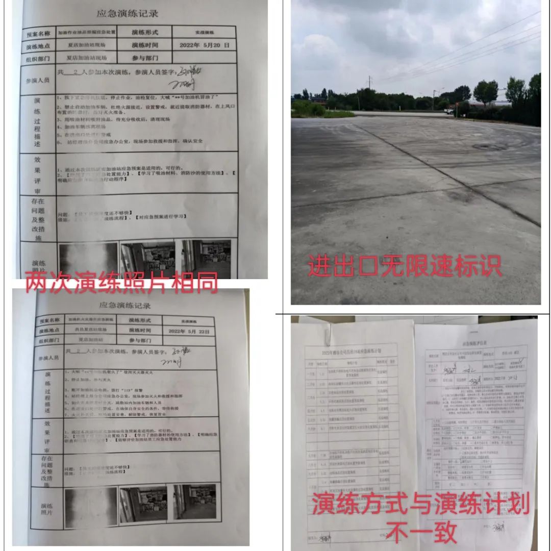 企业自查阶段,全市66家加油站共自查整改问题隐患74项,开展应急演练167次,开展警示教育97次,涉及企业员工234人,大大提升了我市加油站安全生产整体水平。但通过检查发现,部分加油站仍存在问题隐患排查不到位的现象,如:配电箱未规范接地、配电箱门外急停按钮未设置防护罩、加油站进出口标示严重老化等问题隐患。