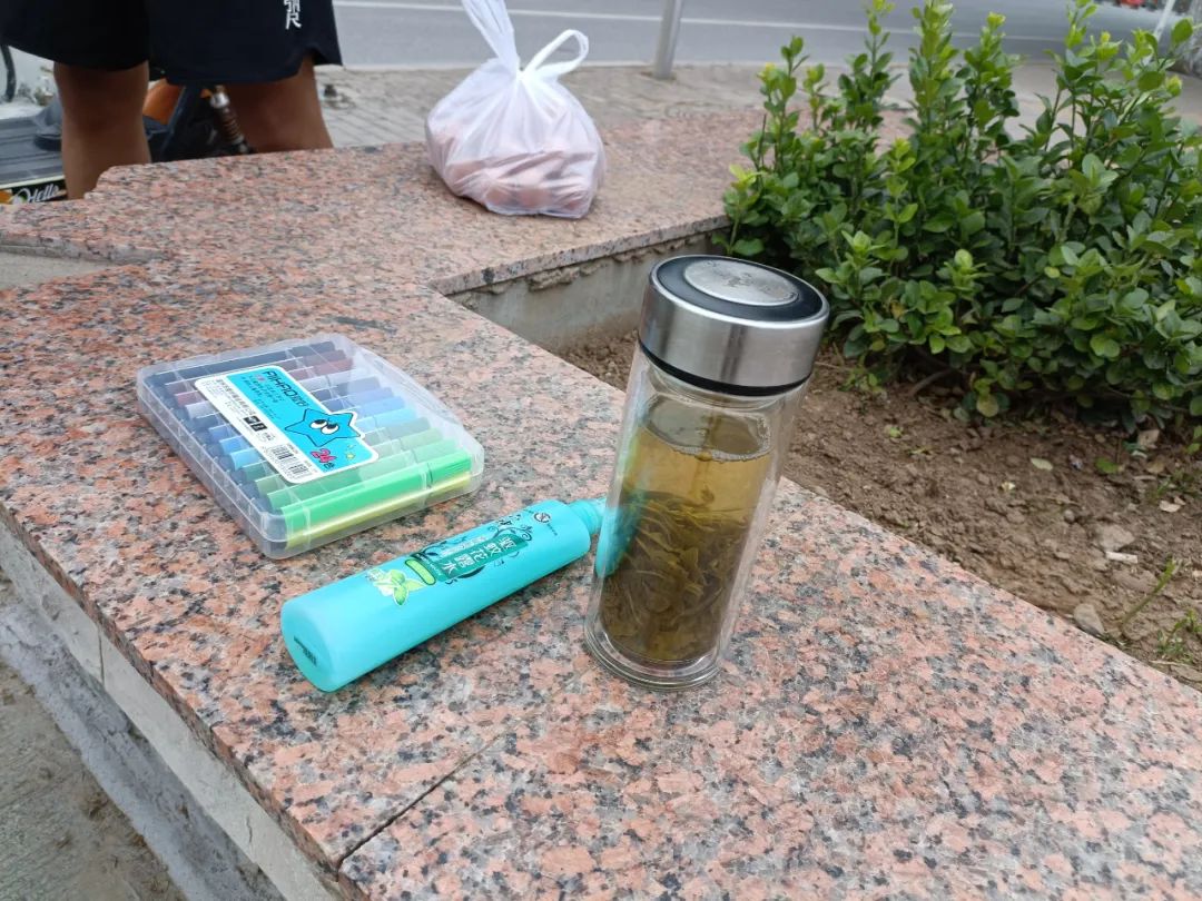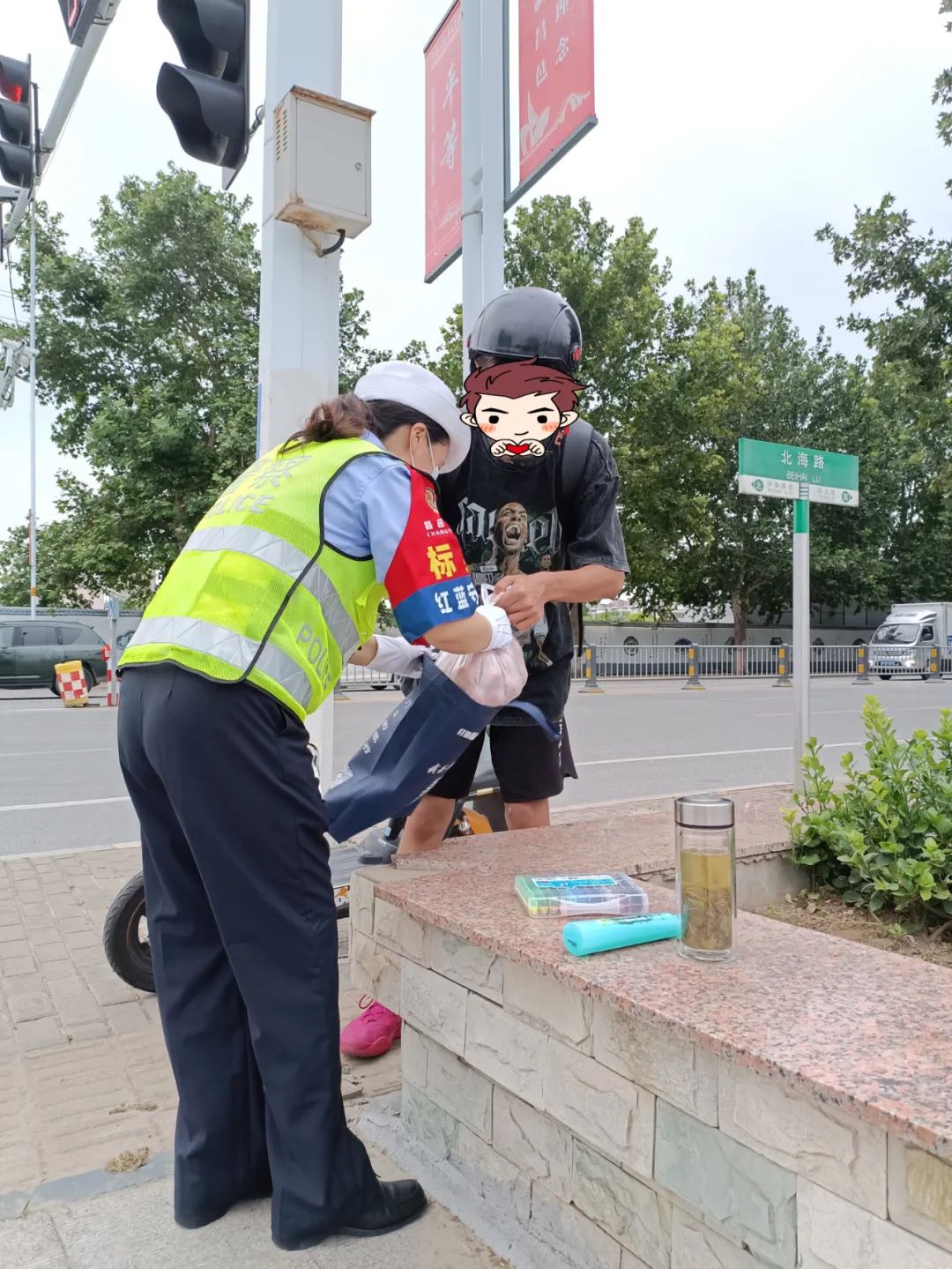 值得一提的是,交警姐姐在清空手提袋时,我看见里面有一个水杯,有大半瓶花露水,还有一盒刚买的小学生水彩笔。