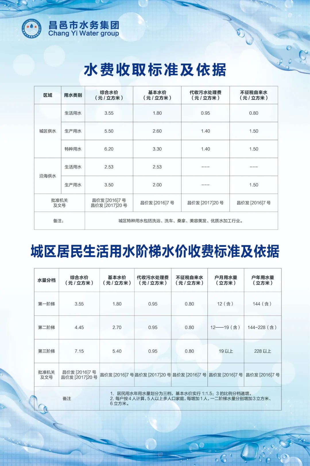 首页 行政动态 昌邑市水费收取标准及依据 生活用水阶梯水价收费标准及依据 昌邑市水费收取标准及依据 生活用水阶梯水价收费标准及依据 昌邑之窗 发布于 2022年8月1日 评论关闭 阅读(1440) 0-144方 3.55元/方 144-288方 4.45元/方 大于288方 7.15元/方