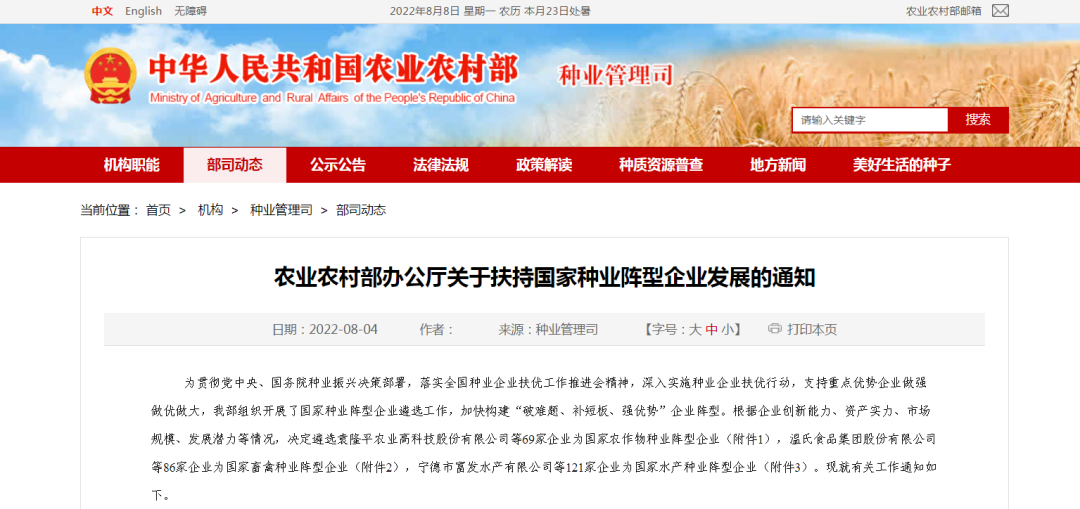 下一步,我们将把扶优水产企业作为打好种业翻身仗的关键一招,摆上种业振兴行动的突出位置,引导资源、技术、人才、资本等要素向重点优势企业集聚,打造一批具有核心研发能力、产业带动能力、国际竞争能力的航母型领军企业、“隐形冠军”企业和专业化平台企业,加快形成优势水产种业企业集群。