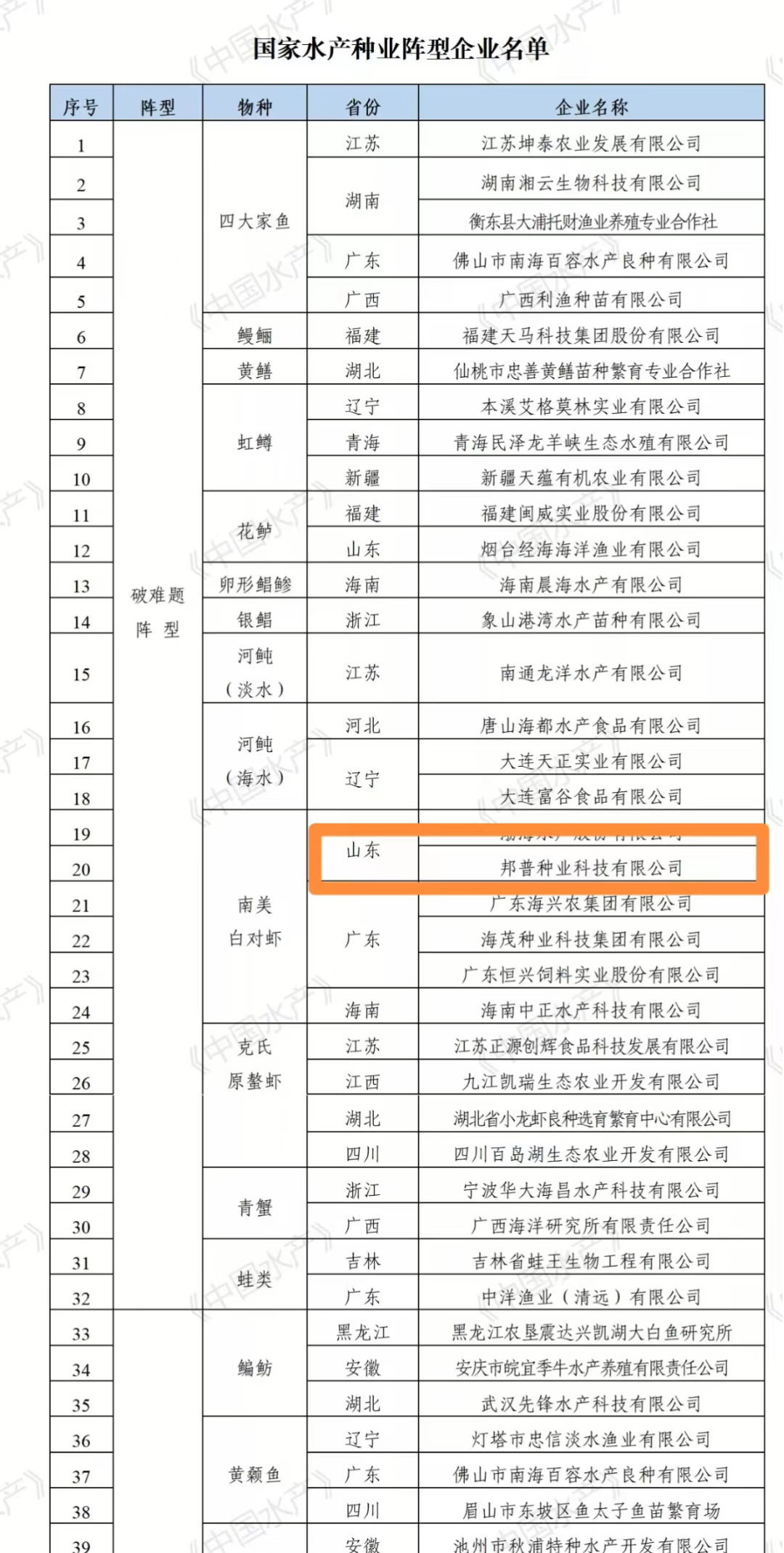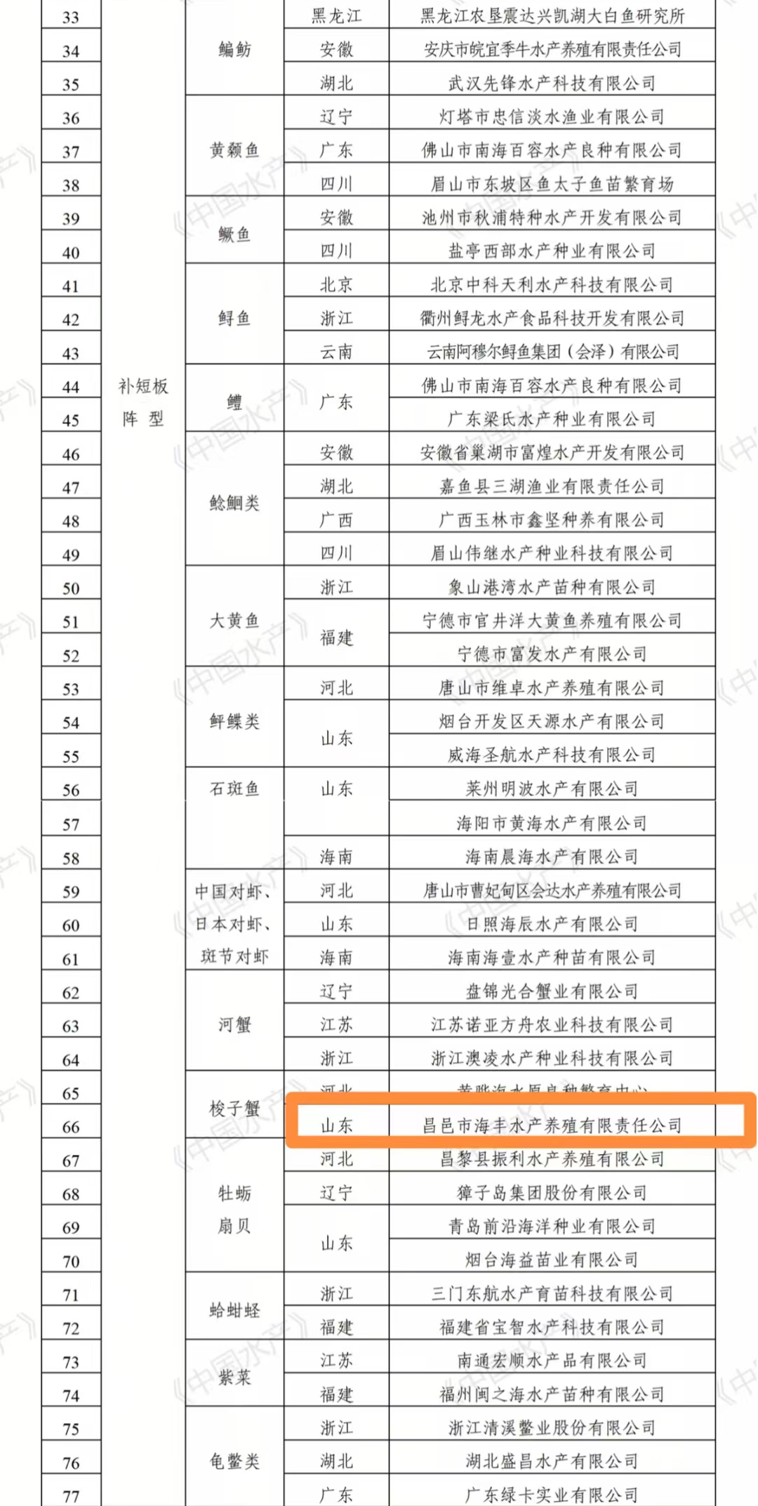 我市有2家水产企业入选国家种业阵型企业名单,其中邦普种业科技有限公司入选南美白对虾破难题阵型,昌邑市海丰水产养殖有限责任公司入选梭子蟹补短板阵型。