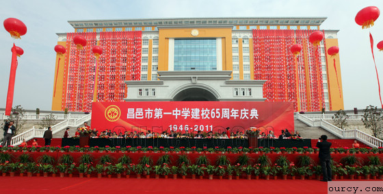 10月5日上午,昌邑一中65周年庆典活动在新一中广场隆重举行。昌邑一中创建于1946年,65年来培育出了近5万名学子。瑛瑶其气,玮器争艳,铸就了一中的光荣与辉煌。2010年学校搬迁新址,新校占地600亩,现有118个教学班,在校学生6500人。