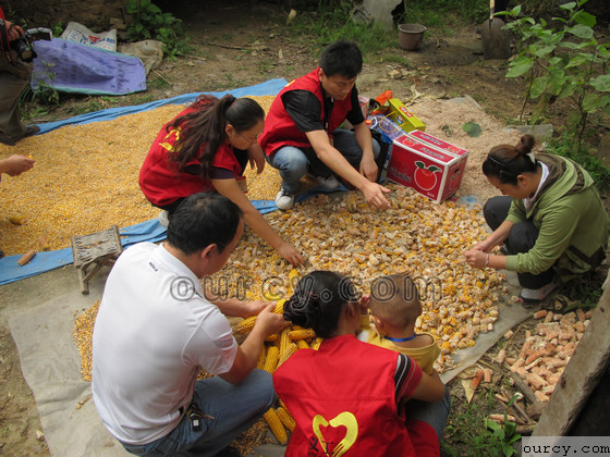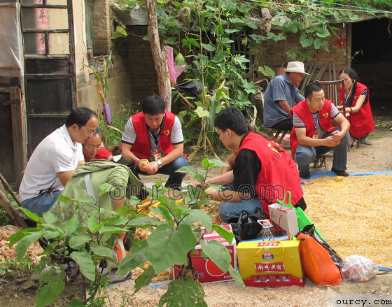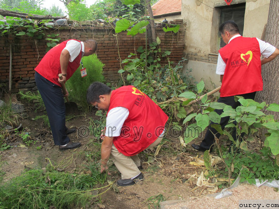 义工们来到老人家,各自带了月饼、烧鸡米油等节日礼品或日用品,并带了家中干净的旧衣服和慰问金送给老人。打开破旧的门栓,正碰到老人在收拾自己责任田里收获的玉米。老人讲,随着年龄的苍老和疾病的加重,地里的庄稼活逐渐干不了了,如今责任田里的庄家只种夏季一季了,还是乡亲邻里帮着种的。可这些庄家是自己唯一糊口的来源,还要坚持种下去。义工们把慰问金递到老人手里,放下送给老人的东西,就开始忙活着收拾粮食打扫院子。他们用了半个上午,把老人堆在院子里的玉米棒槌把完粒子,清除完院子中的杂草,重新整理了院子中堆放着的碎砖,又把门前的杂草垃圾清理一空。一位做过医护工作的义工还现场给老人测了血压,检查了老人的健康状况,并叮嘱老人生活中的防护注意事项以及如何用药等。