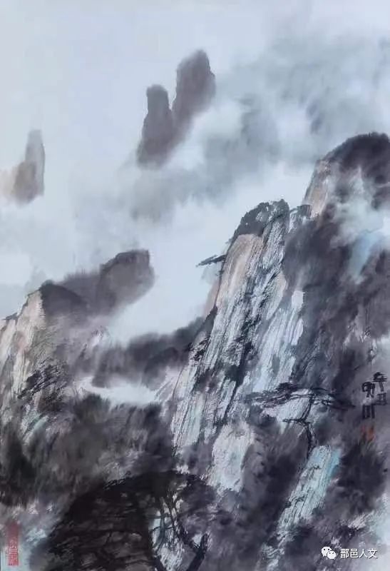 我印象中他画崂山最多,一年四季,五冬六夏,不是在崂山写生,就是在往崂山写生的路上。他常说,崂山太深奥了,崂山的厚重和变化一辈子都读不完。古有米芾以石头为师,今有张明川以崂山为师。米芾有拜石图传世,如果我为张明川画像,肯定要为他画一副“崂山拜师图”。我陪他去写过生,看他拿画笔,轻松几笔就能勾勒出眼前山的样子,我禁不住感叹:这画家的手太伎俩(昌邑话,手巧的意思)了。每次去找他喝茶,他总会找出最新的崂山写生给我看,我说:你这是怎么画的,你看这个树密密麻麻,密不透风;你看这个山,危峰耸峙,凛然如大将军啊,云云。一听我就是个外行,但我真的觉得好看,哈哈!