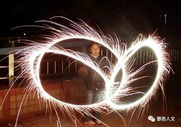 每天傍晚,男孩女孩每人都手拿一支,小手一摇,莲花串串,银光闪闪,满街都喊着:“滴滴吉,滴滴吉,不等黑天放两根!”孩子们高兴的在街上窜来窜去,来回奔跑,孩童们挥着“滴滴吉”摇晃,火花随着孩子流动,整条大街就变成了一条繁星闪烁的的银河宵汉。有的孩子放“滴滴吉”别出新裁,把一根向日葵杆子,用涶沫沾上一串“滴滴吉”,在大街上摇晃奔跑,变成了一面银光闪烁的流星帘幕,伴随着孩童们的跳跃欢呼,银色的火花,漫天飞舞,与星月争辉,一幅美丽灿烂的夜景画卷立刻就展现在了乡野农村。