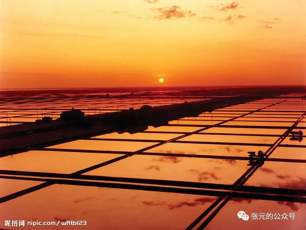 建国以后的数十年间,历届人民政府带领勤劳质朴的家乡父老,大兴鱼盐之利,在日益改善人民群众物质文化生活水平的同时,为彻底驯服桀骜不驯的海潮,从上世纪七十年代末开始,分期启动了拦海大坝兴建工程。如今,家乡长达35公里的海岸线上,已巍然耸立着一道堪称为海岸长城的石砌海岸长堤,任堤外涛飞浪卷,却难逾长城一步,忠诚而又伟岸地守护着五十多万安居乐业的士农工商……也就是从那时起,沿海那片85.3万平方公里的银色滩涂才真心实意地变成家乡人形容为取之不尽的聚宝盆。仅从我有了记忆的三十多年时间,我就先后在这片浩瀚的土地上目睹过水平如镜、鱼翔浅底的沿海稻田和海涛一样随风翻滚的稻浪,真是比“喜看稻菽千重浪”中伟人笔下那种不凡的意境还要壮观!再后来,人们觉得种稻子并不过瘾,这里又铺天盖地变成对虾养殖基地,产量一度占据全国三分之二以上的对虾市场,且走出国门跃上外国人的餐桌。现在再逛北海滩,则需驱车才算科学……笔直而平坦的柏油路,一直延伸到海堤,呈棋盘网格状南北相连东西相通。而阡陌交织的盐田就壮观而有序地分布在这个巨大棋盘的网格里。波光粼粼的卤水池内,你或许会听到水晶般透明的盐粒子在阳光下唱着歌儿结晶!数年前赴京公干,曾路过河北盐山县,也曾到过江苏盐城。