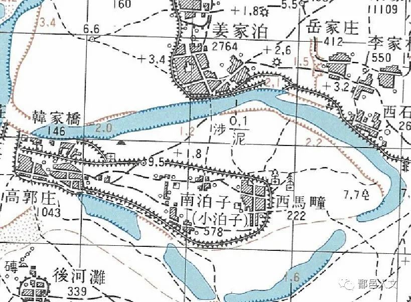 姜泊村前的古河道姜家泊皆姜姓。村中有东西、南北十字道路,晚清时代有寨门之说,现在已无门子之痕迹 ,据说门子内的住户,历史上曾是富户,号称门子里“五大功”。 “五大功”是 晚清年代姜氏五兄弟的商号集合。 延续多辈下来,“五大功”的后裔, 家境大都败落。只有老五姜汾(号功泰)的子孙, 在北京等创有大买卖,在老家村里也盖了多栋二层楼,岀了很多大学士、大名人。