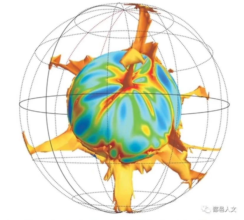 忒伊亚事件约41亿年前,木星和土星的位移打破了太阳系的平衡,引发了一场持续数亿年的“陨石雨”。落入地球的陨石,通过自身所含的水分增加了大气层中水蒸气的浓度,也增加了地球的质量。陆地出现约39亿年前,随着地幔对流的减弱,地球表面温度逐渐降低,密布在大气层中的水蒸气进入凝结模式,出现了连续数百年的大暴雨天气,地球迎来了“超级大洪水”时代。因为当时的地球每天只有6小时,月亮距离地球又很近,地球更快的自转和月球引力的影响,致使初成的海洋里每天充斥着狂风巨浪。