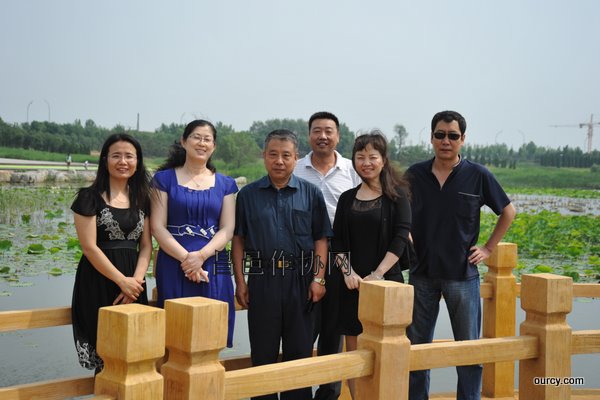 昌邑作协姚凤宵主席(左二)陪同赵京战先生(左三)一行参观潍河湿地公园