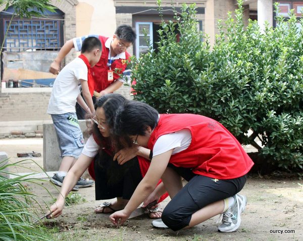 义工成员们听老人讲述着过去的故事、英烈的事迹,他们拿起扫帚和簸箕,帮年迈的老人拔草、清扫院子,以感谢老人和他守护着的英灵们,送给了我们安居乐业的时代,送给了我们新中国的平安疆土。