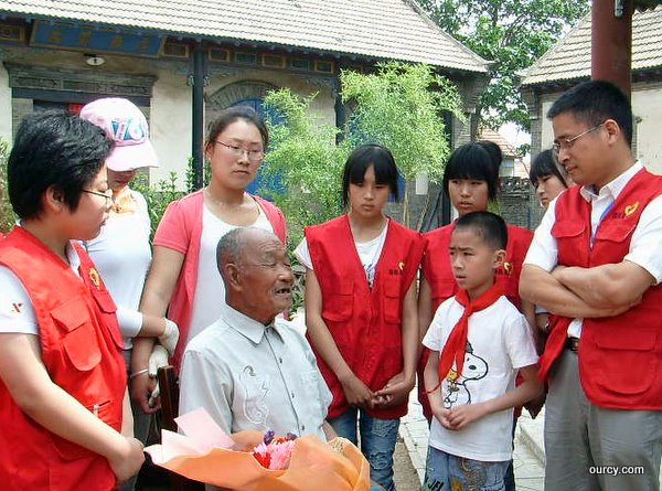 党的九十华诞之际,昌邑义工走访慰问了部分抗日、抗美援朝老革命、老党员。6月25日,他们来到龙池烈士祠,探望了在祠堂里为革命先烈守灵三十余年的抗美援朝老战士、老党员陈光聚老人。
