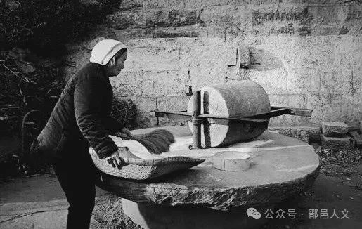其实当时大队里就有现成的磨坊,各种粮食、糕面都可以磨,极快捷又卫生还不用排队。但就是没人去,为什么呢?因为当时大家都认为在磨坊用机器磨出来的糕面,蒸出来的糕口感差还不粘,不如用这种原始传统的石碾磨的好,因此各家是宁愿在这寒冷的严冬熬时费力地来这些碾屋排队,也不去磨坊,其实这完全是一种偏见。要是遇到雨雪天就更麻烦,那时又没有塑料布,只得用个旧麻袋旧衣服或被单子之类的罩上继续,否则真的就耽误蒸糕了。
