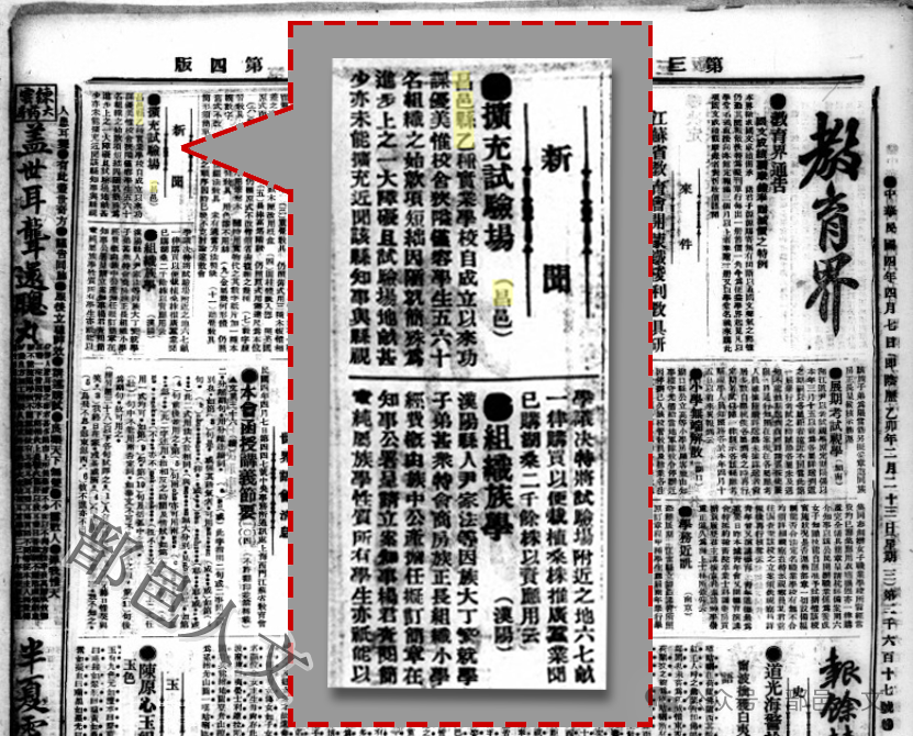 民国《教育报》刊登“昌邑乙种实业学校扩充试验场”