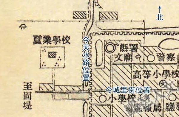 乙种蚕业学校新建于县城,具体位置有“西关”、“下宫”等不同记载,这只是地名概念大小之区分,二者有区域涵盖关系。当时的县城,四面有城墙,西城墙及护城河大致与现在的天水路石渠相重合,西城门附近即为西关。所谓“下宫”,据昌邑古县志记载,其本名为“玉真宫”,民间习惯称“下宫”,具体位置在市府街东首北侧,原市政府院内。当时“下宫”属于西关村,其所有权和使用权问题,还有一段“小插曲”。据县立师范讲习所所长张汉杰(1933年暑假调讲习所接孙淑之任所长)记载:“1933年,县府下令乙种蚕业学校停办,讲习所得以将校址迁往下宫乙种蚕业学校。更因下宫原为西关所有,办蚕业学校时,县府与西关协调,交政府办学使用,设一初小,西关学龄儿童可以免费上学,一切设施和教师配置,皆由蚕校负责,多年以来,已成立案。我在职时,西关庄长李玉堂总想收回,县府不准”。看来当时学校虽为“县立”,但县政府并非“财大气粗”,财政捉襟见肘,为建该学校,与“坐地户”西关村“变通”交易。实验场是乙种蚕业学校的重要部分,大致位于现天水路与富昌街路口的东北角,原土地属董家城后村,由县政府购买充作学校实验场“栽植桑株”,此地与“下宫”临近,便于教学和实践的结合,师生往返十分方便。地处北孟的乙种蚕业学校于“民国五年转移至县城西关”,记载非常简略,是整体转移还是部分转移,资料没有详述,至今仍有存疑。据朱树屏年谱记载,他于民国元年起住北孟池子村外祖父家,“民国六年(1917年),与其三舅同时考入4里外的北孟村县立乙种蚕业学校。外祖父每晚教他与三舅读《四书》。1920年,蚕业学校毕业”。此记载似乎与“民国五年(1916年)转移至县城西关”的资料记载有冲突,至目前,还没有更精确的资料佐证其中的原由,但我们可以推测:民国五年(1916年)北孟学校的大部分师生转移至县城,鉴于原校舍及桑田试验场尚存,为分担城区学校校舍不足压力,且方便昌邑南部学生入学,原北孟校区暂时保留,仍有周边少数学生就读。