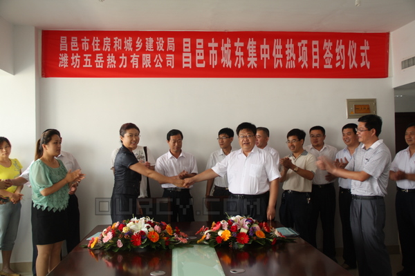 2011年6月24日上午,昌邑市城东集中供热项目签约仪式在昌邑翰林商务大厦顺利举行。昌邑市住房和城乡建设局局长马玉涛及部分领导班子成员、建设局机关中层以上干部;潍坊五岳热力有限公司的分管负责人、昌邑城东热力有限公司法人代表等出席签约仪式。