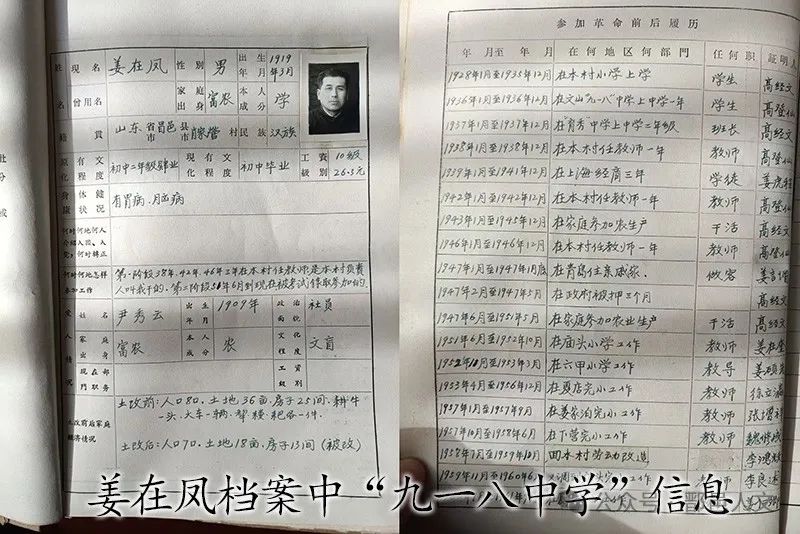 姜在凤,1918年3月出生,卜庄肖家营村人。少年时在本村读小学,1935年就读于“九一八”中学,学校停办后,于1936年考入育秀中学继续学习。抗日战争爆发后,育秀中学于1937年底被迫停办。之后,他在本村小学任教员,间隔本村务农。1951年起正式入职教师职业,先后在庙头小学、六甲小学、夏店完小、姜家泊完小等学校任教,退休前系龙池中学教师。“文革”期间曾被错划为“右派”,1978年10月平反。他擅长写作,曾著有《昌邑私立九一八中学》、《日寇包围肖家营与季方华脱险》等文章。