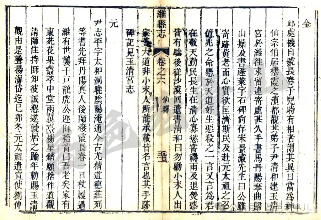 清乾隆《潍县志·仙释》中丘处机、尹志平的记载