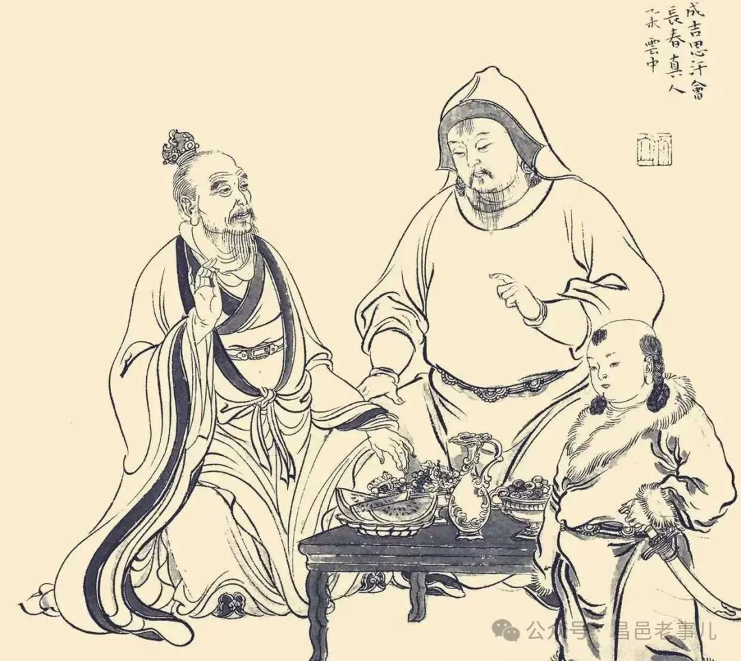 在历经近三年后,行程万余里,丘处机一行终于在金宣宗兴定六年(1222)四月,抵达西域“大雪山”(今阿富汗兴都库什山)八鲁湾行宫觐见成吉思汗,实现了龙马相会(成吉思汗属马,丘处机属龙)。在交谈中,丘处机为天下苍生计,力劝成吉思汗去暴止杀、济世安民,曾对成吉思汗言道:“每言欲一天下,必在不嗜杀师人,为治在敬天勤民,长生在清心寡欲。”
