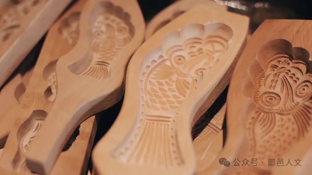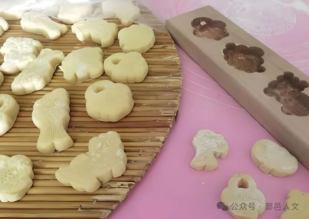 据资料介绍,搕板除木制的以外,还有石、陶、玉、瓷、锡、铜等等多种材质,其器型也有鳌鱼、鲤鱼、莲花(莲蓬)、寿桃、喜字、树叶等等多种多样,表达的文化意象也是多方面的,如还有一些蝙蝠、燕子等等动物,也都表达各种喜庆、吉祥之意。我小时候,也见过一种特殊的搕板,在一块长条的木板上,凿刻着约八种不同的图案,都是些动物或花鸟鱼虫之类,但这种榼板制作出来的面食,都是小巧玲珑的,且不是蒸熟,而是炒制而熟的面食,叫做“炒榼子”,多用于当零食。