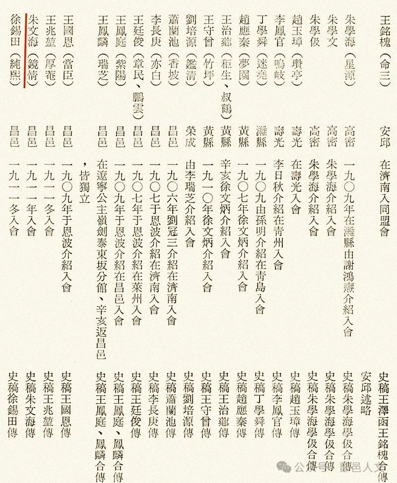 ——入会同盟。1905年,孙中山在日本成立同盟会,提出“驱除鞑虏,恢复中华,建立民国,平均地权”的革命宗旨,山东志士踊跃加入。当时,同盟会在国内设立五个支部,其中北方支部设于山东烟台。1906年春,昌邑人士陈干借去日本考察军事之机,拜见孙中山、章太炎等,由章太炎介绍,在东京本部宣誓加入同盟会。陈干是现有资料记载的昌邑籍人士最早入盟之人。随后,包括朱文海、朱文泉兄弟在内的更多昌邑籍进步人士加入同盟会。据宋甲其主编的《昌邑民主革命史料钩沉》所载,昌邑早期同盟会员名单(按乡镇排列)中,北孟镇就有三人,分别是朱文海、朱文泉和李丕振(字鹭翔,刘瀛海门弟子,北孟小学堂办学人之一,后任县参事委员会文牍,“五一八惨案”中遇难)。