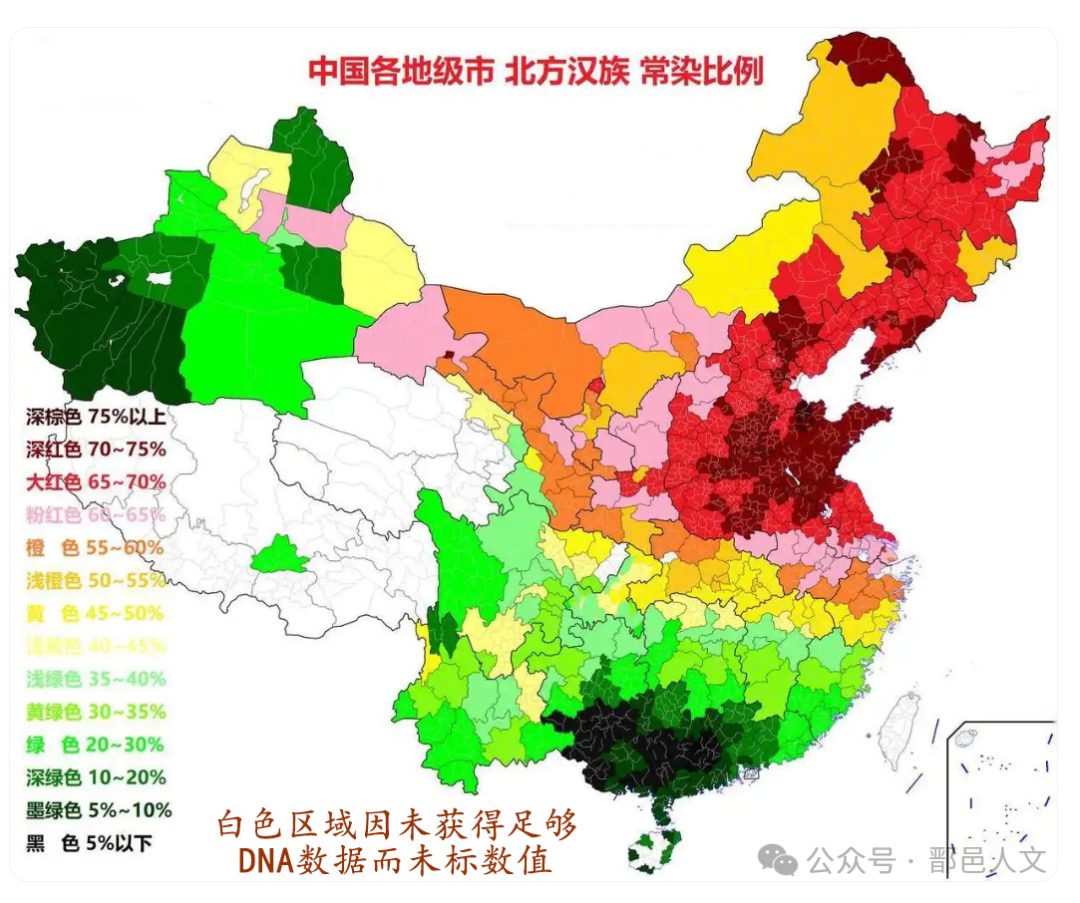O3-M122是汉族Y单倍体的标志性基因,在汉族男性人口中占比高达50-60%。复旦大学绘制的各方言区汉族父系基因频率图显示,各方言区O3-M122比例从高到低排序为:胶辽官话69.5%,冀鲁官话67.5%,中原官话62.6%,北京官话61.5%,东北官话60.7%,粤语60.0%,洪巢官话59.6%,客家人59.5%,吴语57.3%,通泰官话56.2%,赣语56.1%,西南官话53.0%,晋语51.0%,闽语47.4%。显而易见,山东人无疑是最正统的中国人,也是最标准的汉族人。