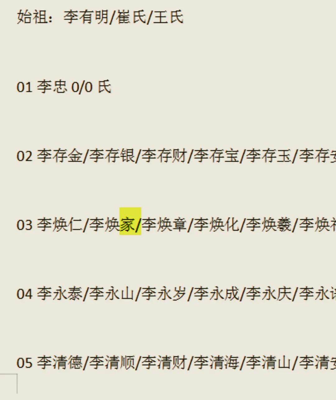 网友阳光:昌邑夏店肖家营村李姓为:西丶宗丶洪丶桂,后未排序。