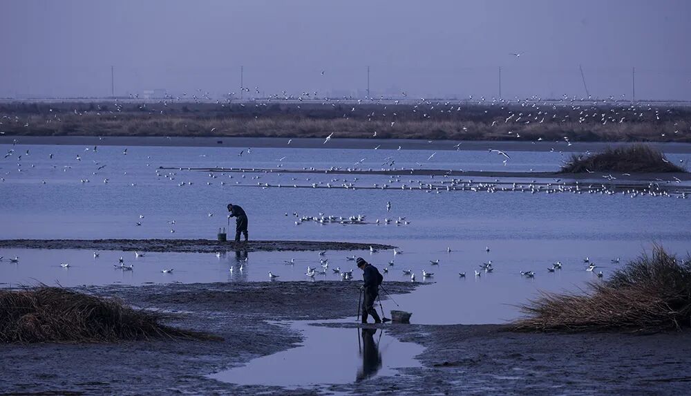 干啥“大事情”?赶海捡梭子蟹(老家俗称“捡海”)呗。中秋吃螃蟹(海蟹或河蟹)是老家一大习俗。咱村毗邻渤海莱州湾南岸,距海滩50多里地。那年代的莱州湾还没有遭污染,海产品非常丰富,不似今日浅海区域少见鱼虾蟹。八月十五前后,梭子蟹膏黄饱满、肉质紧实、味道鲜美,别人家多上集市去买,咱家自个动手去海边捡。爹依据潮汐涨退规律,定好起程时间。八月十四午夜12点,炕头的马蹄型小闹钟将我和爹唤醒,俩人赶紧起床整衣,带好干粮、饮用水、渔具等,推着独轮车星夜出发疾步北上, 马不停蹄40多里广袤滩涂,东方始放亮,但见脚下海潮落尽,海面归于平静。爹说俺已到捡海地段了。我清晰看到一排排渔船南北向抛锚,鱼网都已插好,张口向南呈约130度角的V字型。我高兴极了,朝着渤海大声呼喊:“我来捡梭子蟹啦”!此时我全然忘却了徒步五个多小时赶夜路的疲惫,停车脱鞋开始办“大事情”。