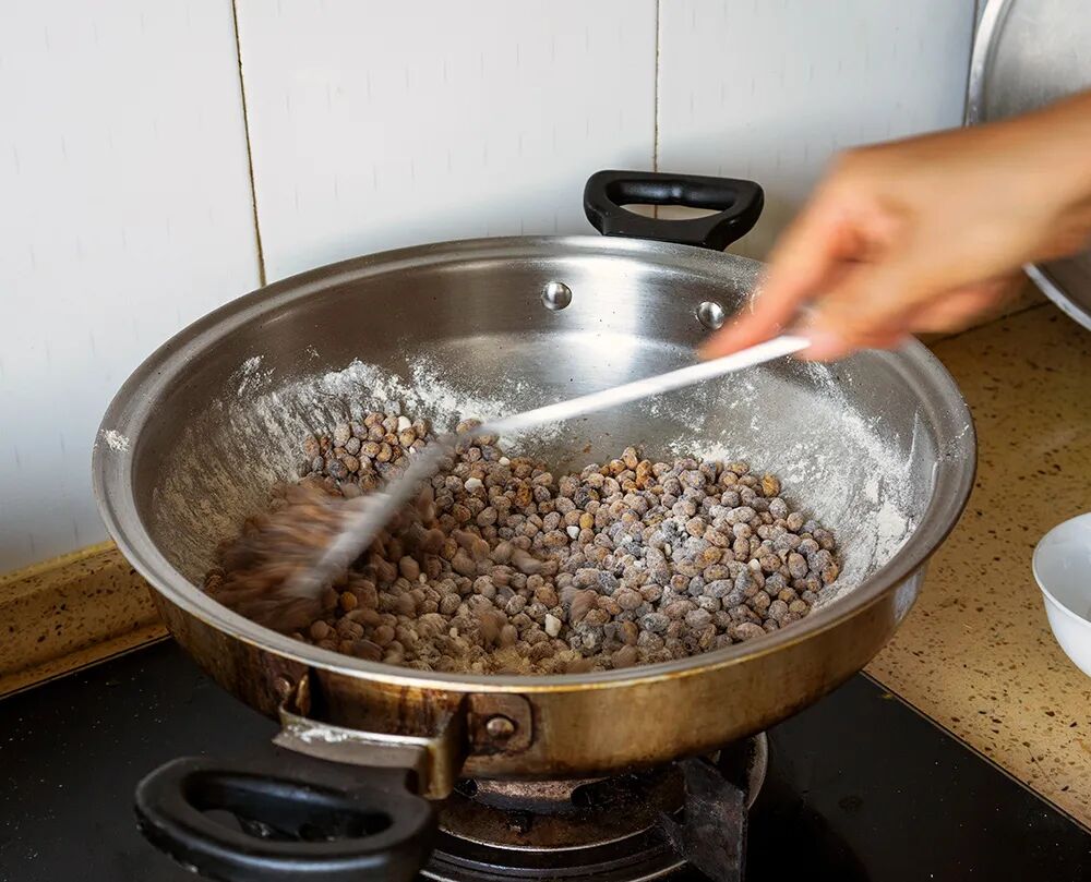 对了,还有香椿芽,现在的吃法都是用它炒鸡蛋,是当下春天餐桌上的一道美味,以前的时候可舍不得这么大方,都是把香椿芽加上盐粒揉搓腌制,当就饭咸菜,而且为了多吃些日子,特意腌得齁咸齁咸的。春天还有榆钱,榆钱其实是榆树的种子,小时候以为榆树开花,是因为榆钱长得一簇簇的,像极了开在枝头的花。阳光透过树梢,一串串的榆钱仿佛在向我招手,那时的我灵巧得像只猴子,三两下爬到树上,边摘边吃,下来时把衣兜里塞得鼓鼓囊囊。洋槐花倒真是花,比榆钱更美也更甜,但树枝上有尖刺,手上经常不小心被扎地冒小血珠。想想小时候和伙伴们在野外吃这花吃那草的,根本不讲卫生,但也没有闹肚子的呢?奇不奇怪?那个时候没有现在超市里琳琅满目的零食,仅有的禄食、点心也是年节下送给老人享用的,我们小孩子一年到头除了村里有结婚的分几个炸馓子和几块水果糖,嘴里根本吃不到什么二样的。不过二月二的时候家里会用豆子炒制做成小食物,一种是黄豆直接炒熟的叫料豆;另一种是把黄豆外表裹了一层红糖面后再炒,叫歇豆。不管是哪一种豆,童年的记忆里这都是奢侈品。