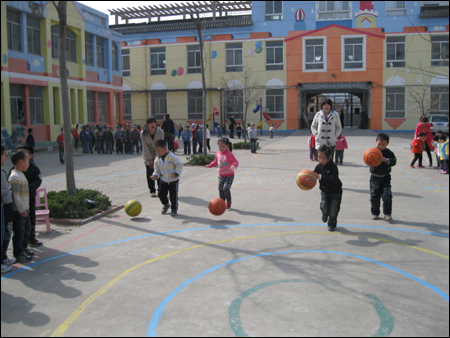 4月20日上午,昌邑实验幼儿园操场上热闹非凡,中班的小朋友正在进行紧张的拍皮球比赛。本次比赛的口号为:快乐拍球,快乐健身!