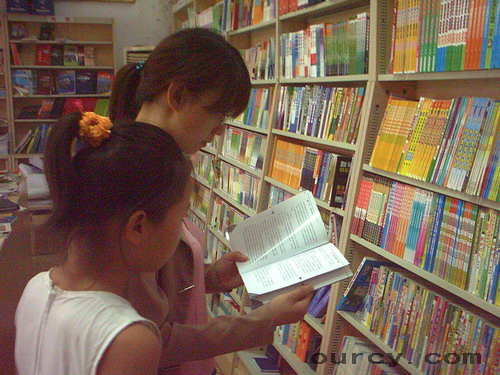 7月20日,昌邑市新华书店内,两名市民正从科普书籍上认真查阅有关日食方面的内容。(图:魏良新) 下图:昌邑市第二实验小学的李熠璇同学用相机记录下了日食的过程并发给本站。