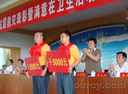 6月27日,我市卫生系统召开抗震救灾表彰大会,表彰我市人民医院赴四川参加抗震救灾的司机刘法涛、谢晓春同志。两位司机自5月14日赴川,6月6日返回,在灾区工作22天。面临道路险恶,经受一次次余震,克服重重困难,历尽艰难险阻,圆满完成上级交给的救灾任务。(图/文 王冠杰)