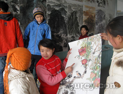 李诗芬是昌邑市第一实验小学六年级的学生,也是该市首位举办个人画展的小学生,此次画展展出了她的100余幅国画作品。学习国画两年多来,她的画画技巧得到了飞速提升,在各类比赛中多次获奖。她的指导教师范开兴告诉记者,小诗芬学画勤奋,尤其是想象力丰富,体现在国现作品中的创造力让他感到惊讶,因为展室空间有限,这次画展只是展出了孩子的部分作品。(记者 张伟丽 摄)