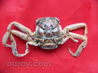 京剧中的脸谱。而一般的螃蟹是鳌大其它的“腿”小,而它则恰恰相反。因觉此螃蟹非常奇特,王先生将