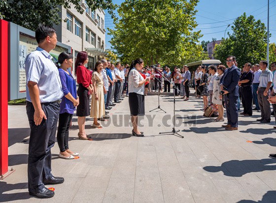 陈干将军外孙女佟立容女士与潍坊市文物局局长刘允泉为陈干生平陈列馆揭牌。