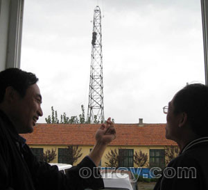 10月6日下午,在昌邑市渔政站办公室内,该站两名工作人员站在窗口远远望着院内通信塔上的五个喜鹊窝。