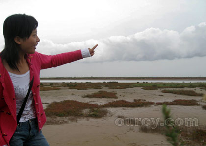 9月29日上午10点20分左右,昌邑市北部沿海上空出现了一条长长的绚丽的云带,这条云带约有50公里,形状不时变幻,自东向西缓缓移动。记者站在沿海位置远远看到,这条云带时而像一条巨龙拖着长长的身体,时而像连绵起伏的大山,水平“飘浮”于灰蒙蒙的海面上,云海相接,情景蔚为壮观。大约半个小时后,云带的色彩逐渐变淡,直至消失在人们的视线里。