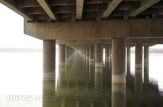 建议路线:由新大桥南侧东岸进入风景带,先沿东侧靠近河堤曲径南行,小路从成片二月兰映衬下的小树林中蜿蜒穿过,景色宁静优美。南行数里后右拐,可见到一处探至河床深处的木制码头,登码头北眺,可观三桥映水之美景。沿水边小路北行,不断有码头突出河岸,或有亭子长廊供游客休息,至大桥底,可观大桥四排立柱纵深穿水之景。过大桥,继续北行,有沿岸木制长廊,西眺对岸,依稀可见对岸垂钓者零星分布岸边。再北上,是一片尚未开发的原始河滩,在该段沙地上放风筝是不错的地方。从该地段登大堤,继续北上,就来到橡皮大坝,在此可观大坝拦水之气势,或从坝北堤坡下至河底,在河床上拣怪石。