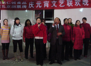 3月5日晚,顺达仁诚食品公司邀全体职工及职工家属,与昌邑城北京剧票房一起举办了一场自娱自乐、轻松愉快的职工元宵文艺晚会,晚会表演了京剧、歌曲、萨克斯吹奏、山东快板、杂技等节目。登台演员多数为本企业职工或职工家属,以及城北京剧票房的热心票友,大家虽然不是什么专业水准的演员,但却都表演的尽情投入、温馨亲切。