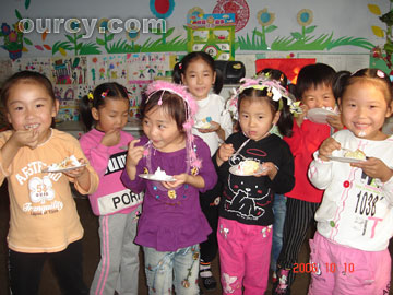 幼儿园里过生日让家里的“小皇帝”们尝试了好东西与别人一起分享的快乐,学会了等待、谦让和感谢,还锻炼了他们的社会交往能力和语言表达能力,“在幼儿园里过生日,我真高兴!”瞧!她们吃的开心,笑的更灿烂!