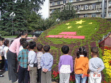 路上的鲜花均以“国庆”为主题进行布置,在视觉上给孩子们营造出浓浓的节日喜庆氛围。而老师们的及时讲解加深了孩子们对国庆节的认识,了解了国庆节的内在含义,更是对孩子们进行爱国主义教育的好机会,让孩子们紧记国旗的鲜红、祖国的伟大。