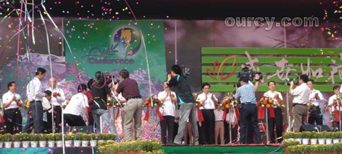 来自国家、省、潍坊市的领导一起为2006中国(昌邑)绿博会开幕剪裁