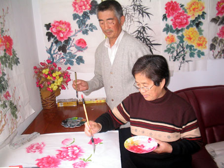 去年春天,一位老友约姚兴波一起去市里的国画院学国画,一旁的陈朋贞听到后,意识到这是个学习的好机会,硬是跟着报了名。到国画班上课的第一天,当其他同学从容地跟老师学画时,陈朋贞却傻眼了,因为从来没有用过毛笔,她连握笔的姿势也不会。当同学们认真地做着讲课笔记时,陈朋贞却连一个字也写不出来,因为多年没有写字,仅认识的那几百个字也不会写了。第一堂课的经历是尴尬的,从老伴嘴里,陈朋贞这才知道,来学画的十几个学员中,除她之外,不是在职教师,就是退休干部。