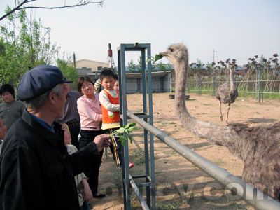 五一长假,绿博园的四只鸵鸟也不再寂寞,与游人嬉戏起来.(Photo by zd)