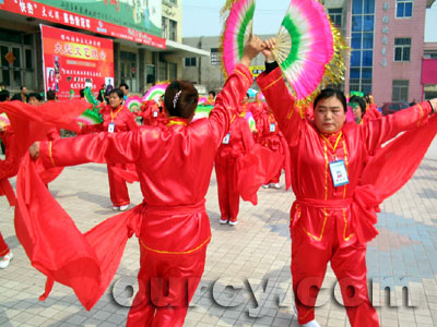 队伍一下子壮大到100多人,这在昌邑的秧歌队中是绝无仅有的,为了不辜负大家的期望,刘德良和64岁的男队员王连芳决定推陈出新,对秧歌表演进行全面“改版”。考虑到秧歌本身就传达着喜庆的信息,二人决定利用队伍“人多势众”的优势,在传统的秧歌表演中加入民间舞龙的组合排列阵式,辅以扇子舞的表演花样,为原本单调、古板的扭秧歌注入新的生机及活力。