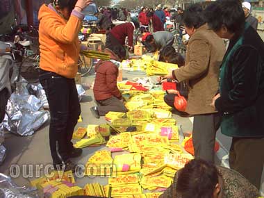 我国主流宗教是佛教和道教,信仰者的膜拜仪式一般都在寺庙场所,但是昌邑寺庙奇少,象样的仅有一个石埠青山清凉殿,还是在几次反复停工复工的争议中建立起来的,再就是双台几个在浮躁年代中幸存下来的残庙遗址了,但这些地方离我们县城太远,多数市民不便前往,所以自然就选择了“潍水环青”的文山。再者文山上过去曾经有过一个挺不错的寺庙,所以就更促成了膜拜者对文山的虔诚,于是,每年三月三,前来文山膜拜的民众络绎不绝,并且有逐年增多之势,以至于近年山会扩展到了山下的利民街东首路段。每到山会,各种经营香火供品的商贩排起长龙,逛市购买者更是人声鼎沸,更有甚者就地购买就地燃烧祈祷,搞的满大街灰飞纸乱。